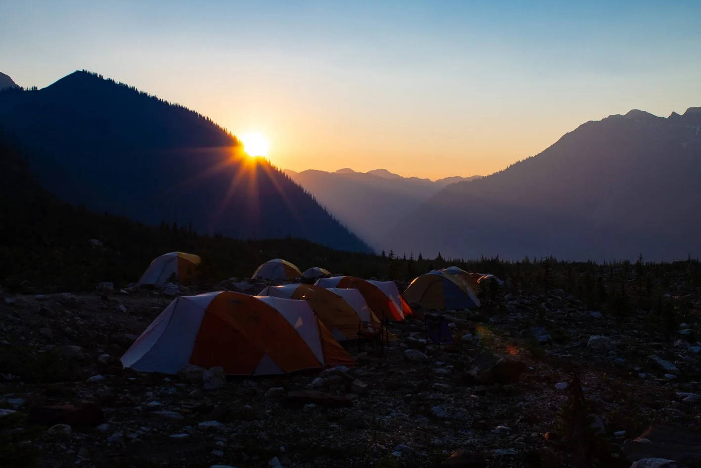 The morning sun is peaking around the mountainside as the Hallam General Mountaineering Camp wakes up for another day in these stunning mountains. We were all very snug and warm in our Mountain Hardwear tents for the week.